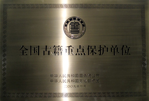近日,我馆喜获由中华人民共和国国务院公布、中华人民共和国文化部颁发的“全国古籍重点保护单位”称号,享受了与国家图书馆、故宫博物院的 “同等待遇”。